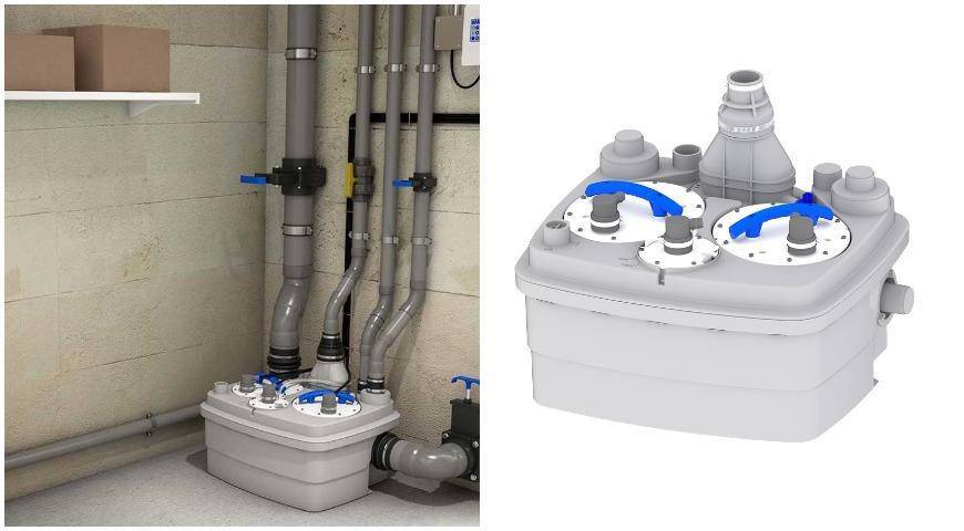 Мы не раз сегодня упоминали о мини-КНС – это небольшие по габаритам установки, которые используют для откачки стоков из унитаза, включающих в себя фекалии и туалетную бумагу. Используют в помещениях подвального типа и на цокольных этажах.
