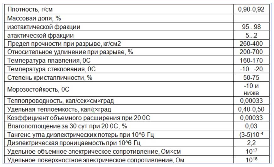 Рис. 4 Характеристики полипропилена (ПП)