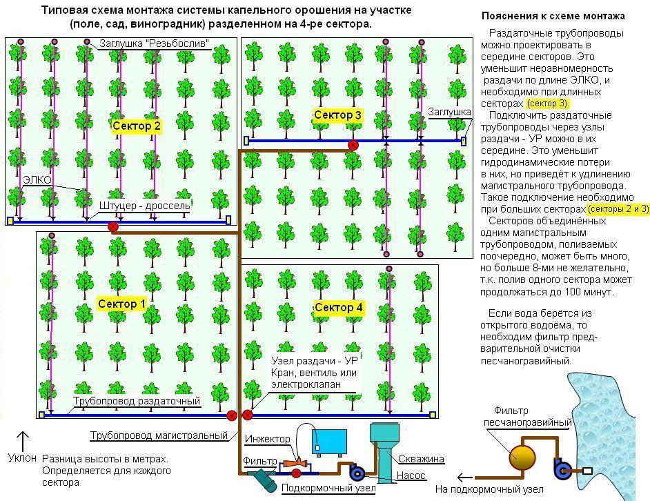 Пример схемы капельного поливаПример схемы капельного поливаСхема простого капельного поливаСистема капельного полива