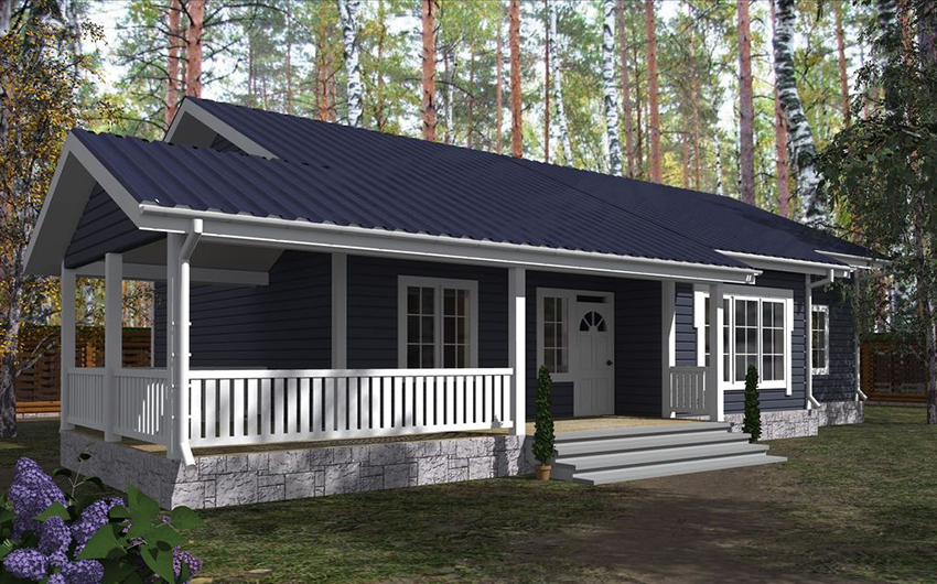 - Каркасно-стоечный остов. Вертикальные стойки исполняют роль свай и крепятся прямо в грунте. Актуально, если дом строится на слишком влажном или болотистом участке. Сваи помогают слегка приподнять строение над землёй.