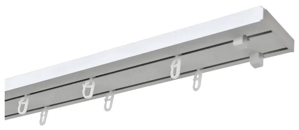 Это негнущиеся системы с пазами для бегунков, предназначенные преимущественно для крепления на потолок. Существует возможность монтажа данной конструкции на стену при помощи специальных кронштейнов выносного типа. Шинные системы могут иметь от одного до трех рядов и декорироваться с наружной стороны декоративной планкой.