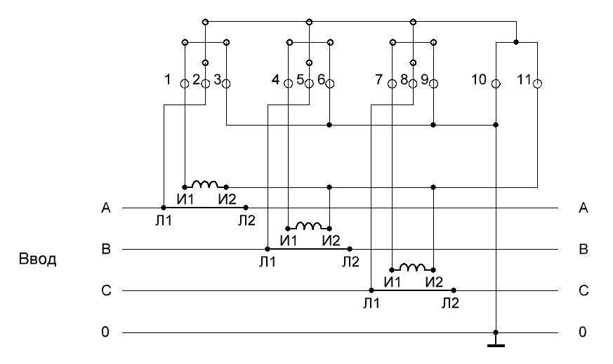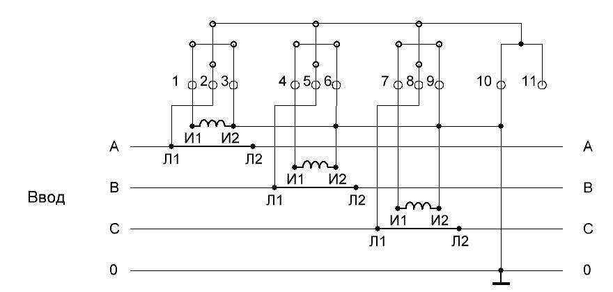Схема подключения трехфазного счетчика через трансформаторы тока