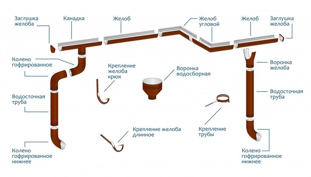 - хомутами — деталями для крепления водосточной трубы к поверхности стены;