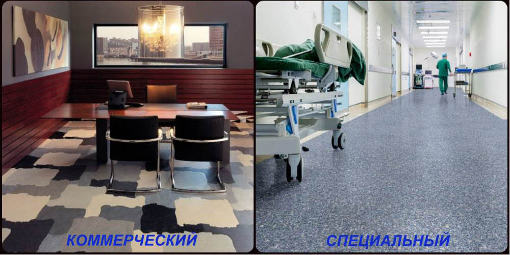 Такой линолеум бывает разных видов — рулонный, плиточный, с сажевым наполнителем или без него. Он также может иметь различные возможности по звукопоглощению и антибактериальным свойствам.