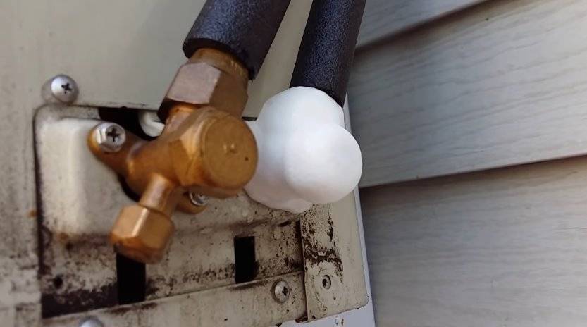 Обморожение концов медной трубки и конденсат на ней – это явный признак того, что в системе недостаточное количество хладагента