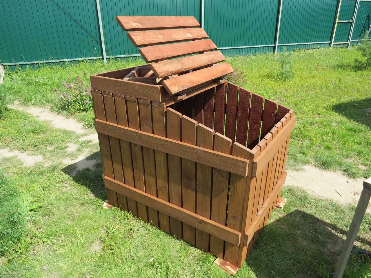 - сохранение внутреннего тепла. С этой целью конструкцию делают со сплошным (имеющим щели и продухи) ограждением. Сетчатые короба не позволяют поддерживать оптимальную температуру разложения органики в прилегающих к стенкам слоях;