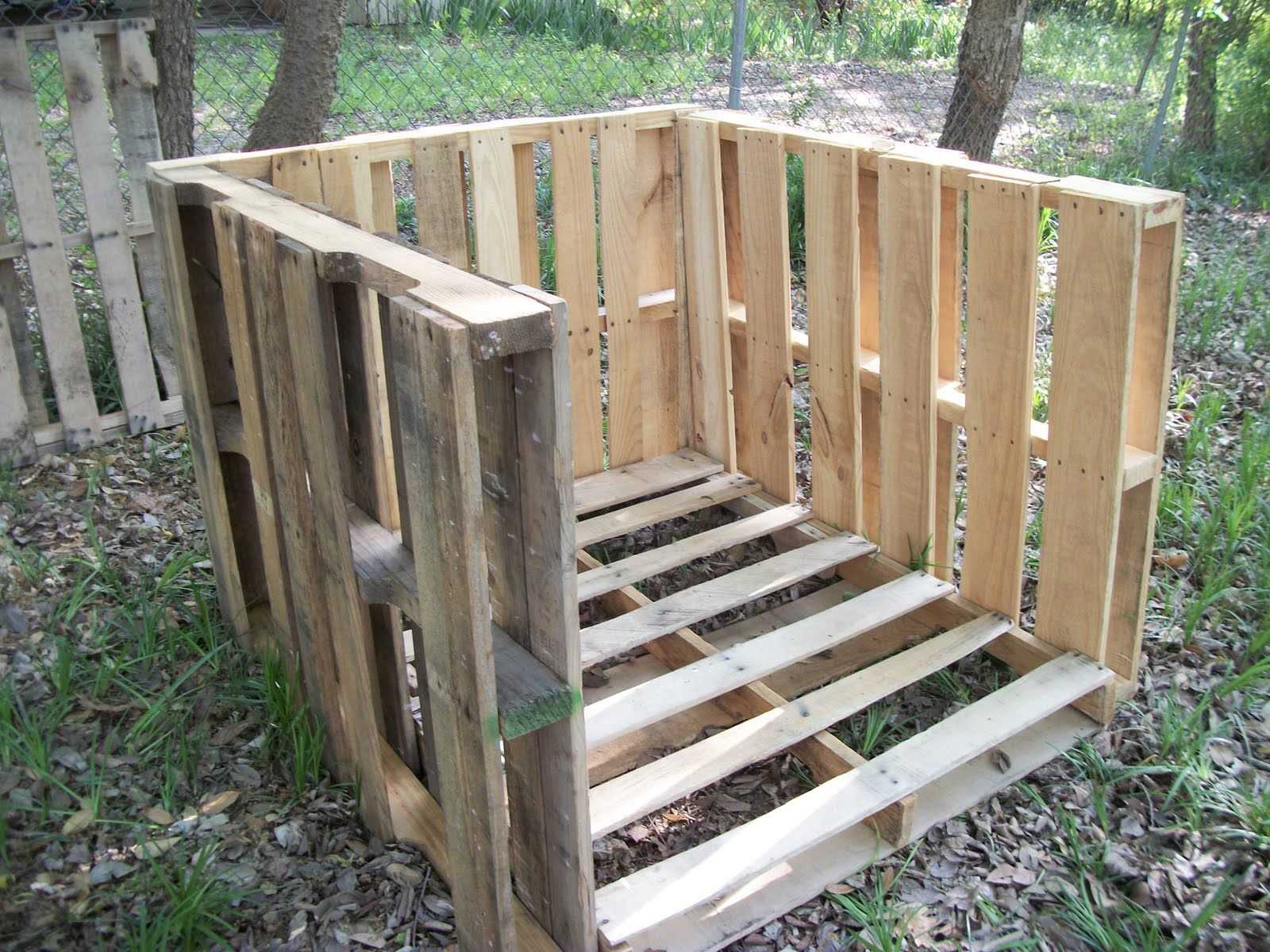 Ключевое преимущество компостной ямы из поддонов — это то, что поддоны являются строительным мусором, поэтому их крайне легко найти и это дешевый расходный материал. Деревянные поддоны разбираются на досточки, они разрезаются циркулярным станком, далее собираются в одну конструкцию и соединяются вертикально, закрепляются при помощи монтажного клея. Заранее делаются специальные отверстия, благодаря которым поддоны входят друг в друга