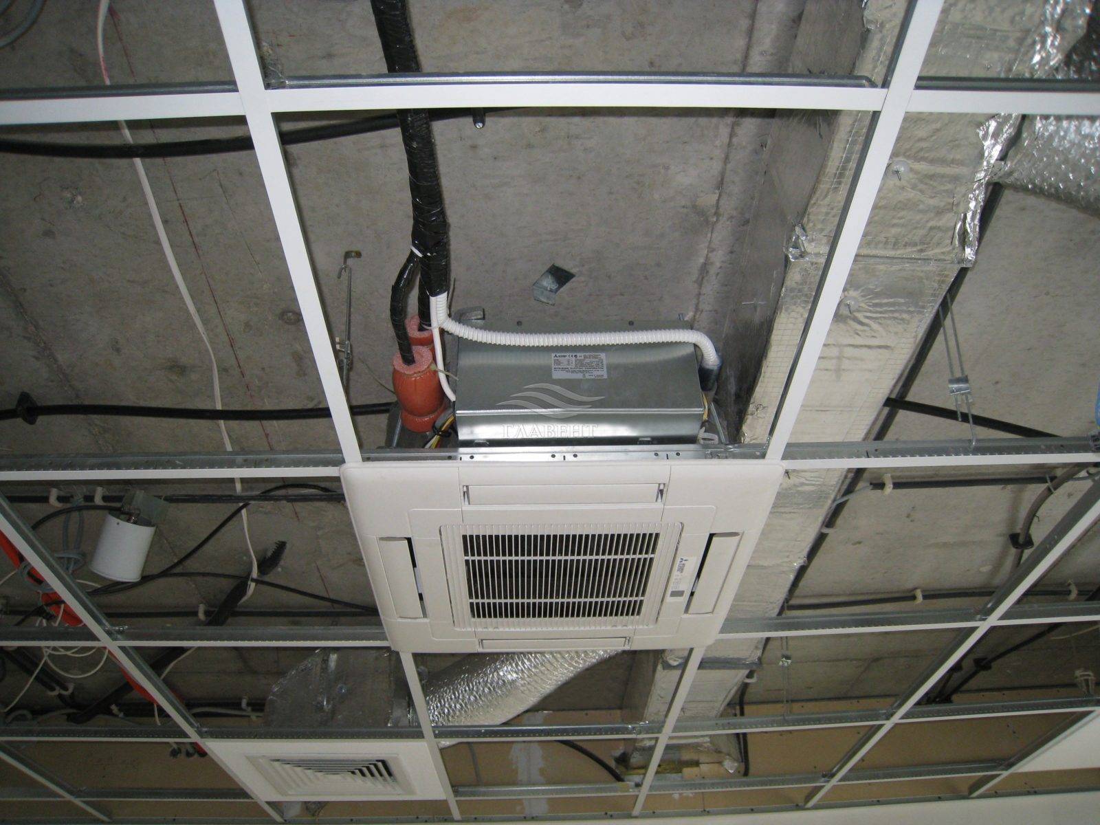 Большинство кассетных кондиционеров предназначены для монтажа на подвесной офисный потолок типа «Армстронг», поскольку внутренние блоки аппарата имеют те же размеры, что и съемные потолочные плиты.