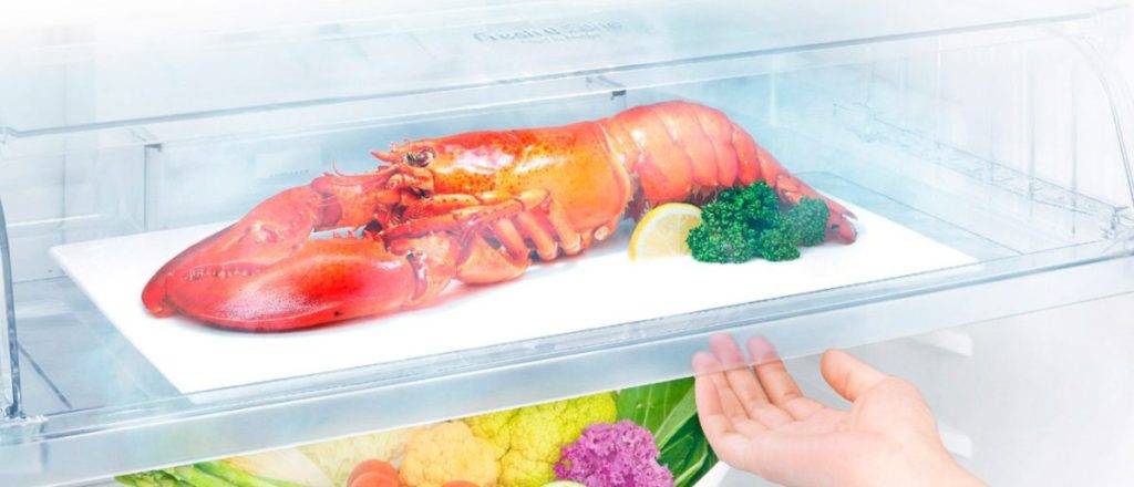 Предусмотрена вместительная двухуровневая зона свежести с отдельным управлением. Выглядит как один большой бокс из пластика и два маленьких с крышкой и отверстиями для вентиляции.