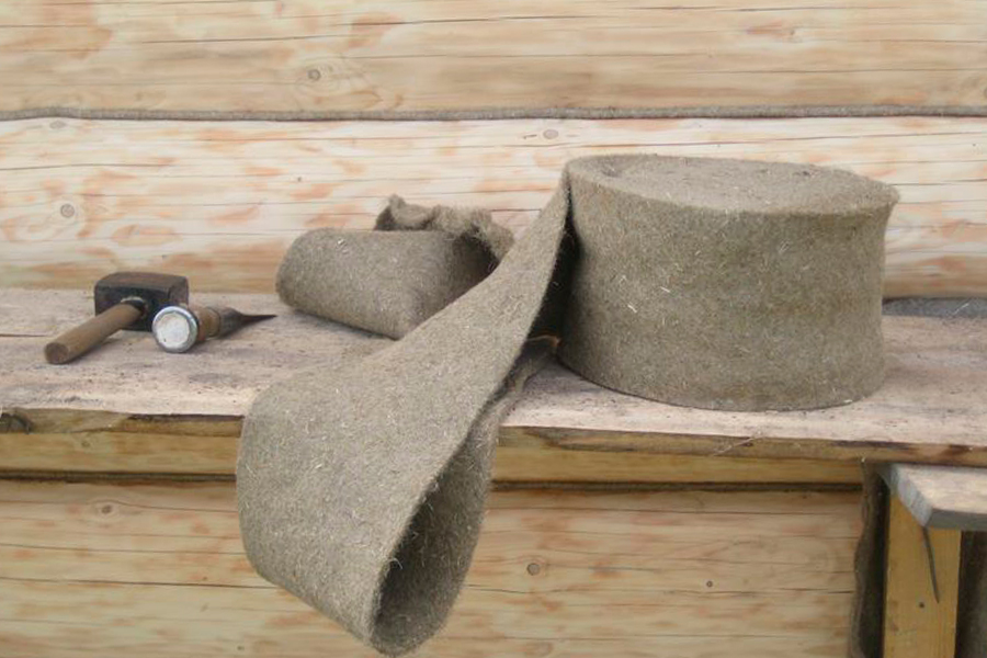 Лет 10–15 назад утепление срубов часто выполняли натуральным войлоком. Он экологичен, удобен в применении, защищает постройку от уличного шума и посторонних запахов, обладает повышенной паропроницаемостью. Но, к сожалению, есть у этого материала и два серьезных минуса. Во-первых, его очень любит моль. Она буквально выгрызает утеплитель. Во-вторых, войлок подвержен гниению.