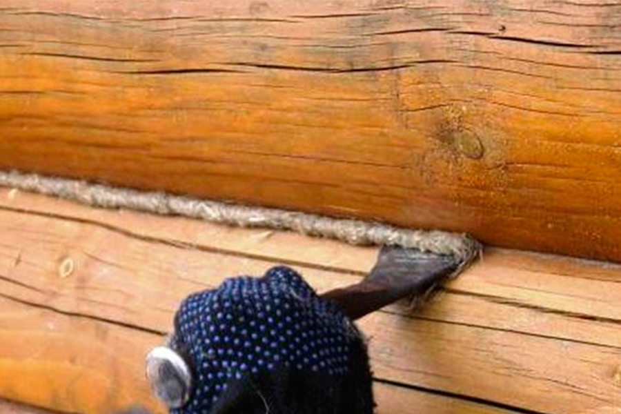 Как проверить качество конопатки сруба? Плотность внутренних и наружных швов можно проверить при помощи стамески или другого острого предмета, который не должен проходить сквозь конопатку. Утеплитель должен лежать плотно, а законопаченные швы должны выглядеть аккуратно и надежно.