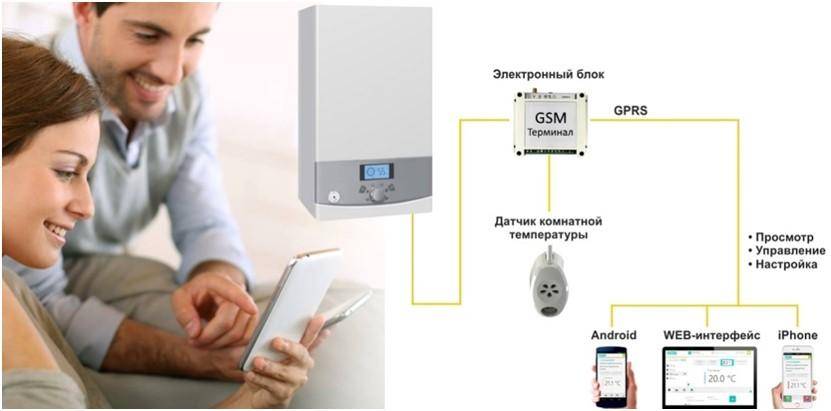Предусмотрено несколько вариантов управления газовым котлом по gsm: