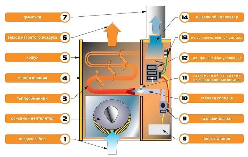 - Пламя нагревает теплообменник, а не собственно воздух в помещении.