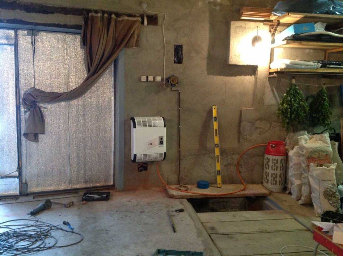 - Нагреватель крепится на стену помещения на кронштейны. Его коаксиальный дымоход выводится в отверстие в стене. Щели вокруг трубы герметизируются негорючим материалом, а снаружи замазываются раствором.
