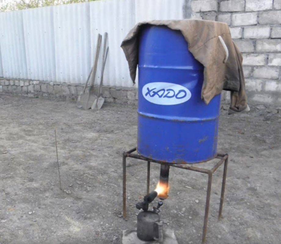Возьмите 200-литровую емкость, чтобы она не контактировала с химикатами, бензином. Если другого резервуара нет, ствол сжигают над огнем, чтобы удалить остатки на стенках и дне.