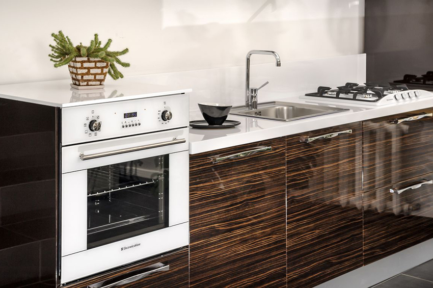 Преимущества духового шкафа, который встраивается в кухонную мебель в том, что он дает больше вариантов для размещения