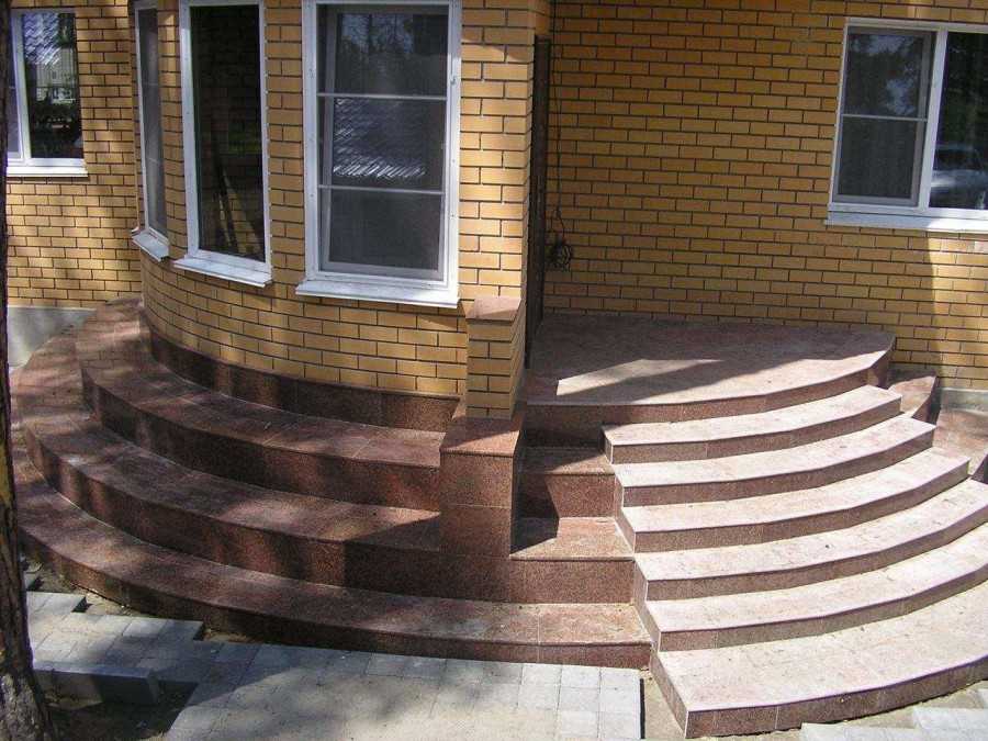 Для изготовления крыльца подойдут все типы камня, хотя некоторые из них имеют больший приоритет. Например, гранит, обладающий уникальной устойчивостью к любым внешним воздействиям и безупречной привлекательностью. Такую постройку гармонично дополнят колонны и другие монументальные сооружения.