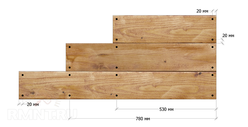 Чтобы сделать нужный уклон, ступени делают одинаковой высоты, но могут быть отклонения в обе стороны не более на пять миллиметров.