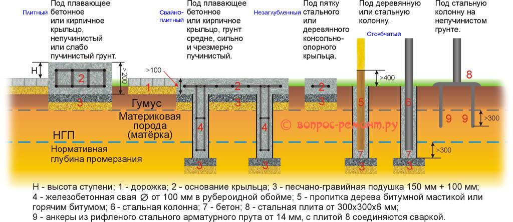 Во время строительства такого типа крыльца самое трудное – это заливка необходимого фундамента, который в любом случае понадобится, даже если это будет легкая конструкция и вы запланировали крыльцо из дерева сделать самостоятельно.