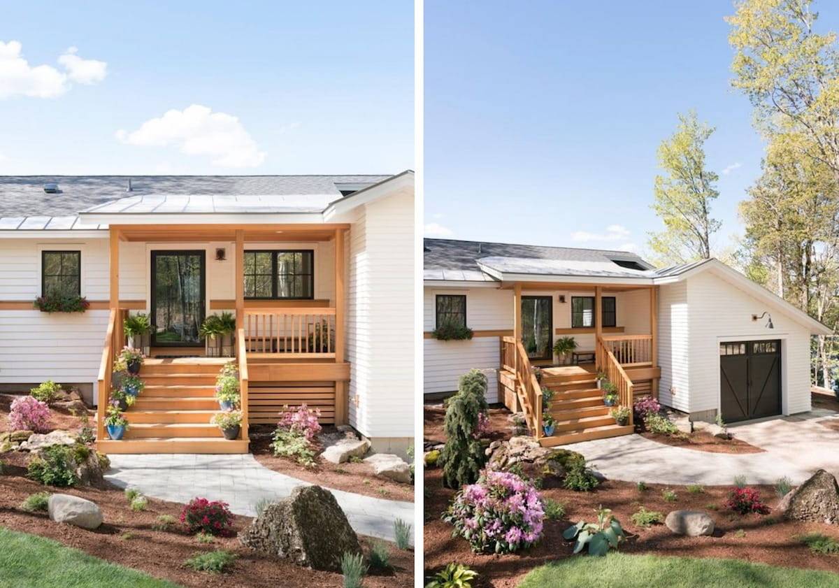 Очень часто дома, сооружённые из деревянных материалов, фактически повторяют простую и современную городскую архитектуру, хотя она не всегда сочетается с окружающей природой. Если уже так случилось, и дом по той или иной причине построен по незатейливому проекту, всё дело может спасти крыльцо.