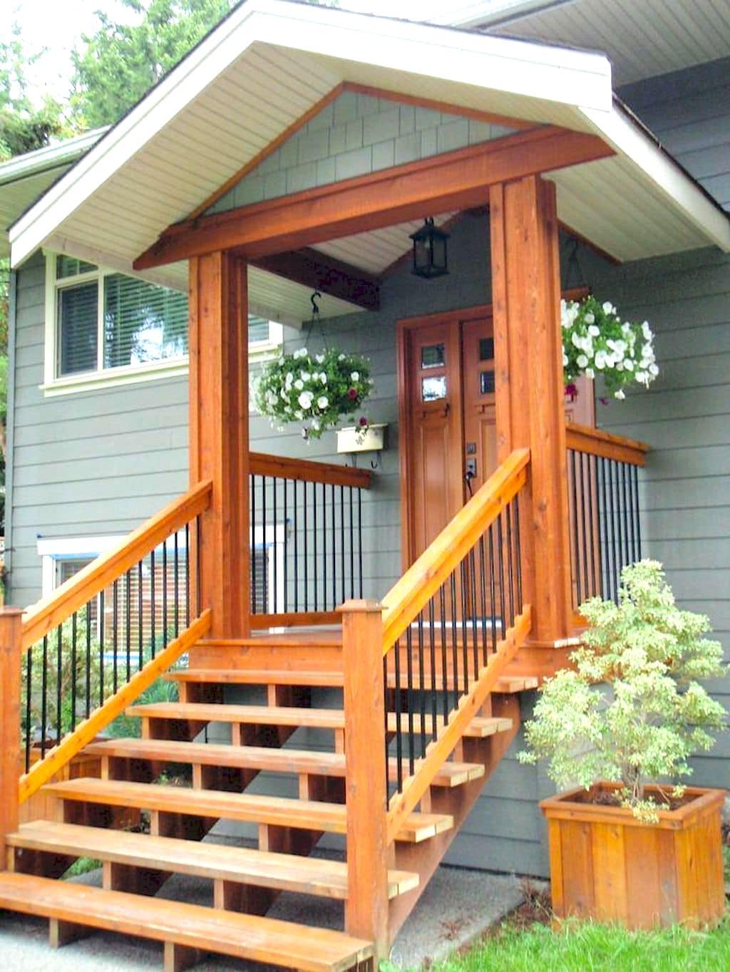 На фото показан вариант оформления крыльца из неокрашенного дерева