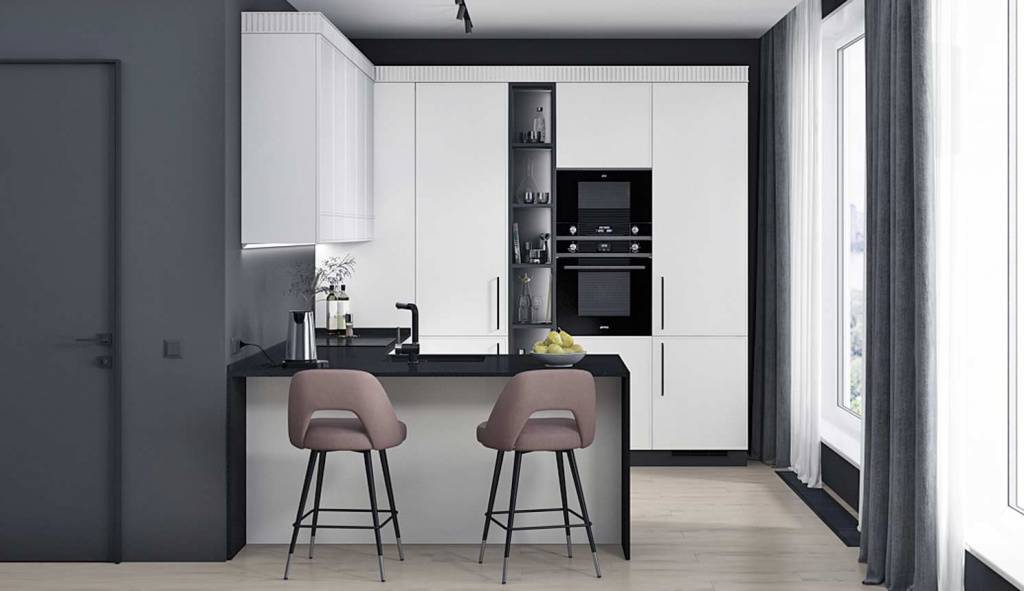 Черно фасады — решение вне времени. Такая мебель эффектно смотрится в любом интерьере и в любом стиле, от минимализма до современного. При изменении соотношений этих двух цветов можно получить совершенно разные кухни. С увеличением числа белых элементов комната становится более просторной и светлой, а с нарастанием темной части фасада — более строгой и солидной. Даже сочетание белого и черного в равных пропорциях позволяет разработать оригинальную кухню, и в том числе создать желаемое зонирование пространства.
