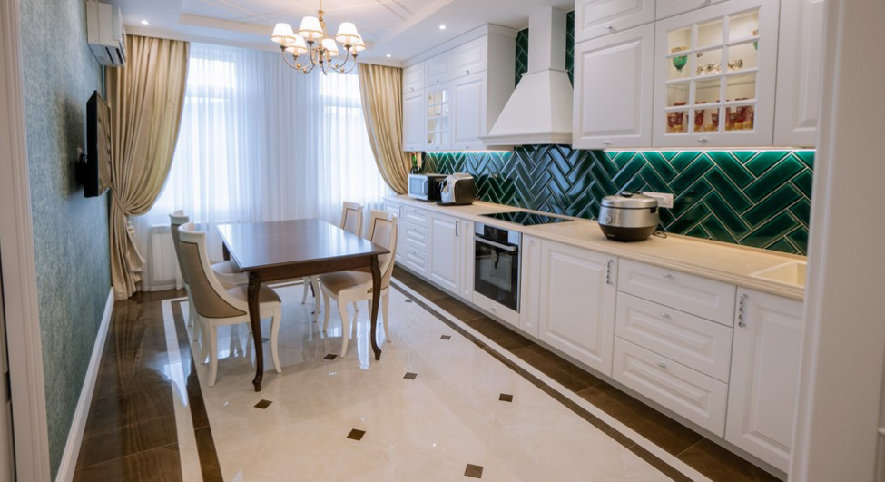 Использование натуральных материалов: В современном дизайне кухни все большую популярность приобретает использование натуральных материалов. Дерево, мрамор, гранит и натуральный камень придают кухне природную эстетику и теплоту. Эти материалы могут быть использованы как для столовых поверхностей, так и для отделки полов и стен. Они придают кухне ощущение природной гармонии и экологичности.