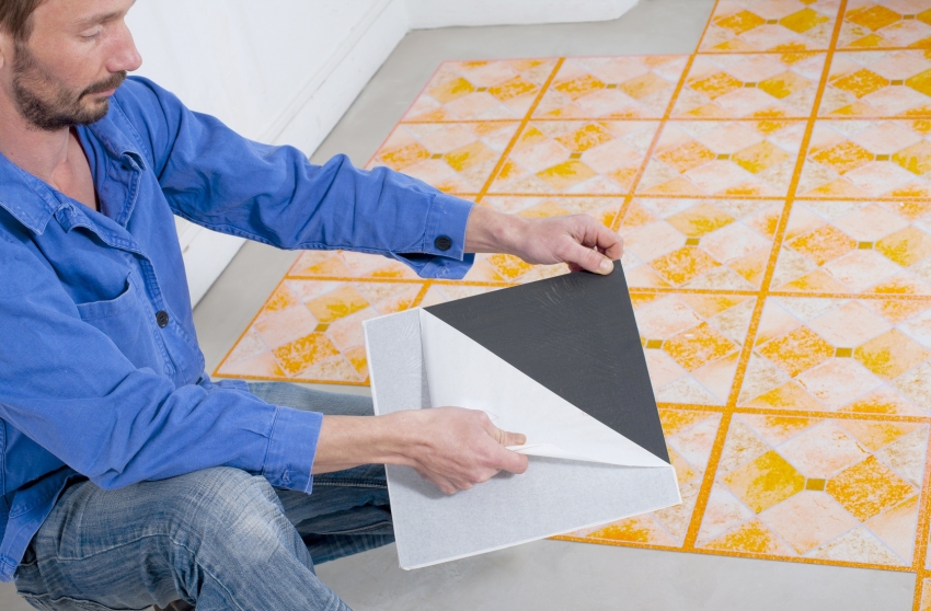 Самоклеящаяся виниловая плитка удобна в монтаже, но срок такого покрытия не слишком долгий