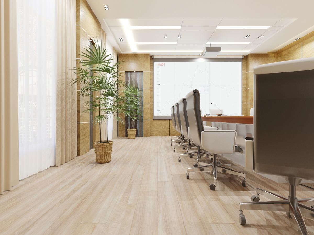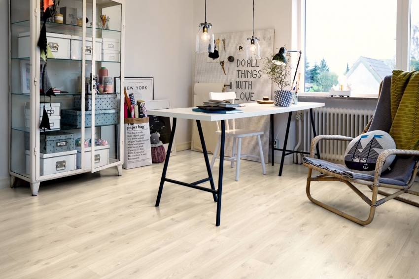 Кварцвиниловую плитку можно укладывать и в спальне, и в офисном помещении.