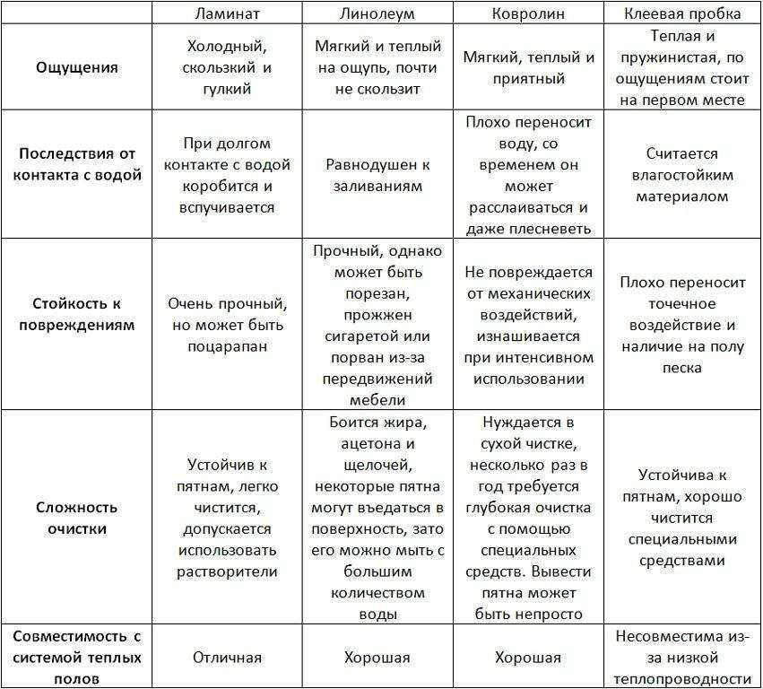 Практичность – условная категория, удобство – субъективная. Постараемся выделить несколько пунктов, по которым можно сравнить разные покрытия.
