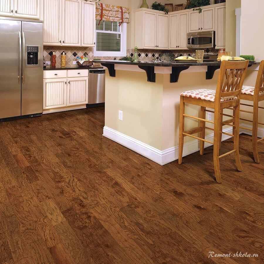Существует ламинат обычный, какой подходит для гостиной и спальной комнаты. Для кухни нужно выбрать водостойкий ламинат, какой превосходит предыдущий по прочности, износостойкости и многим другим параметрам. Лучше приобрести надежное покрытие на пластиковой основе. Однако придется переплатить за водостойкость и надежность. Но «оно того стоит», как утверждают отзывы покупателей.