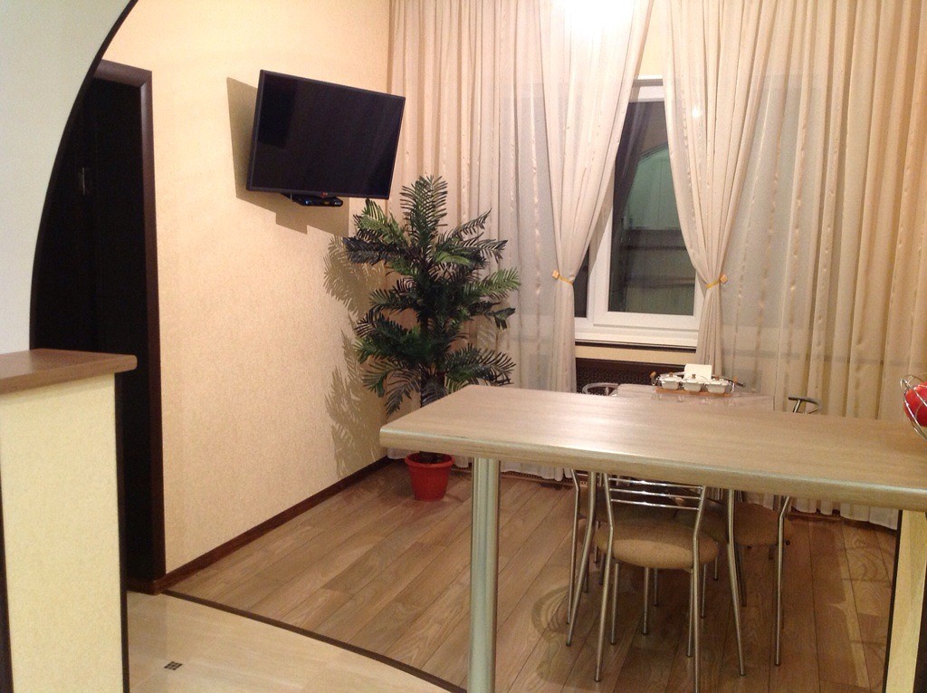 Этот вид отделки прекрасно вписывается в любой дизайн кухни, благодаря наличию всевозможных вариаций. Он может имитировать металл, стекло, почву, кирпич, пластик, кожу, дерево. Последняя разновидность применяется наиболее часто. «Деревянный» пол под массивную доску самый популярный на сегодняшний день. Цвет, «породу» дерева и фактуру лучше выбрать самостоятельно, ориентируясь на интерьер кухни.
