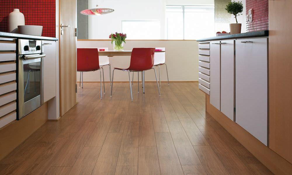 - предпочтителен ламинат с максимально высоким классом влагостойкости, так как на кухне уровень влажности всегда выше;