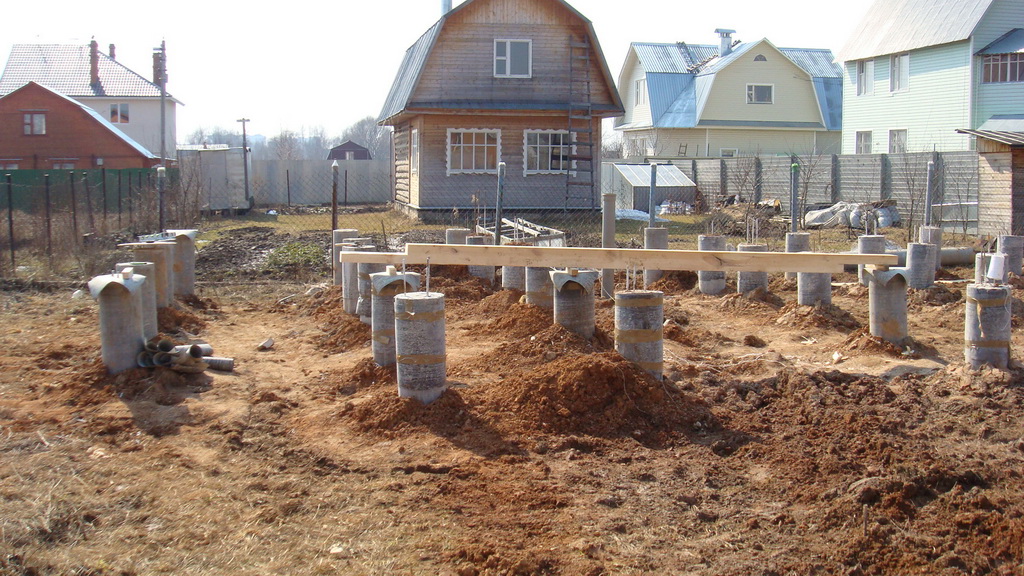 - Если задача стоит, как сделать основание с меньшими затратами, то устанавливают столбчатые опоры.