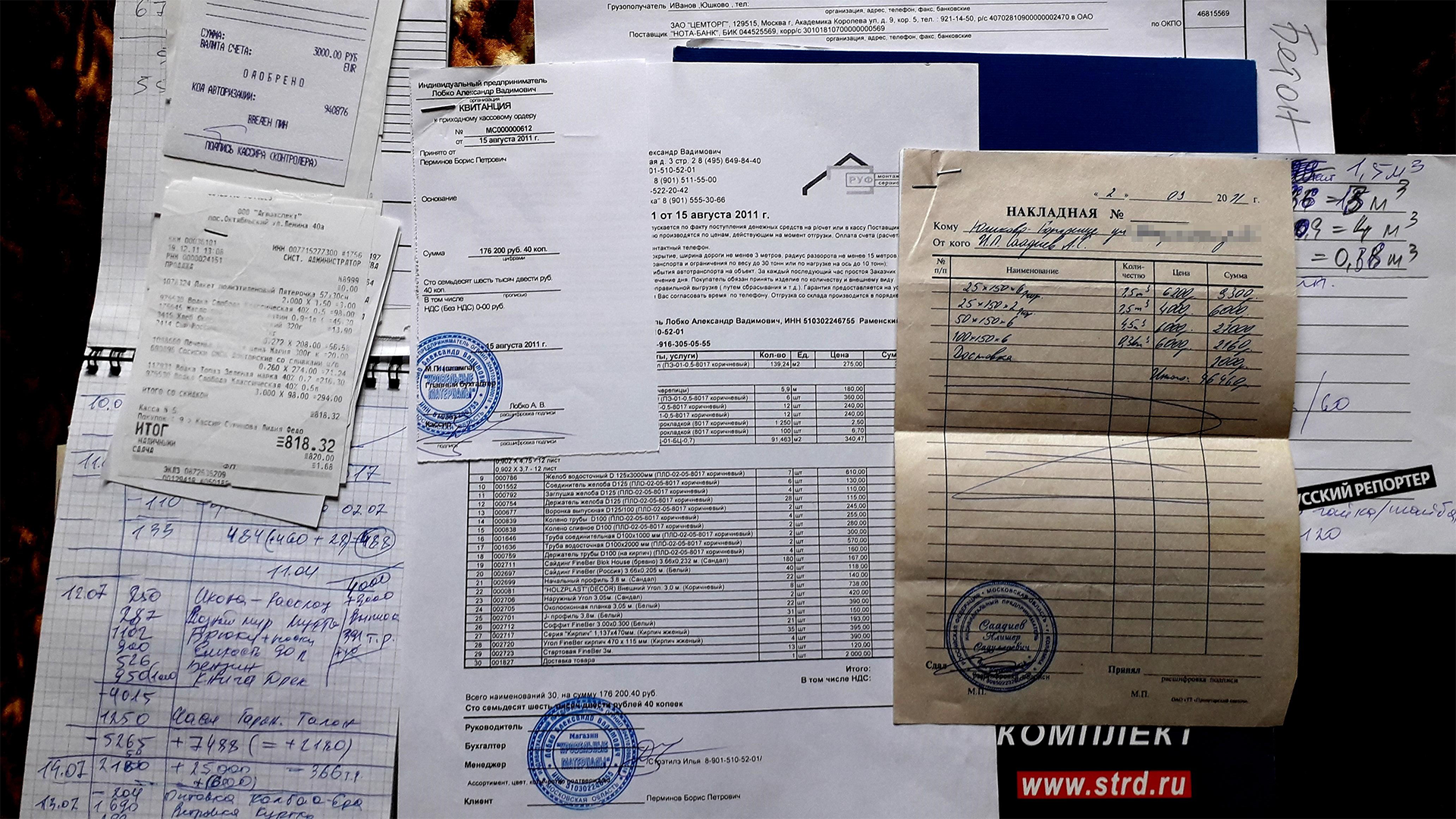 Квитанции расходов на ленту