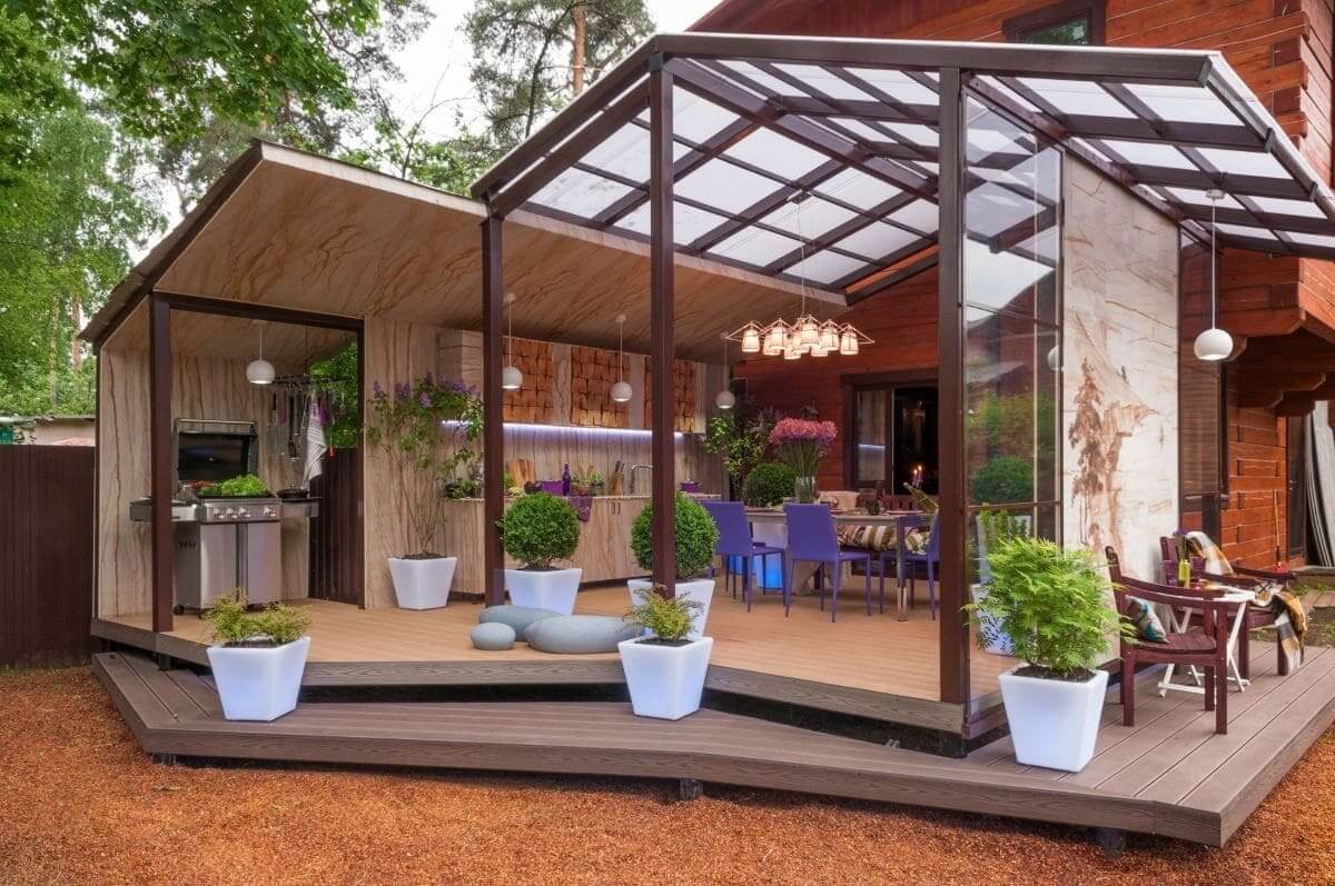 Современная летняя кухня сделанная своими руками станет любимым местом для всей семьи на вашей даче.