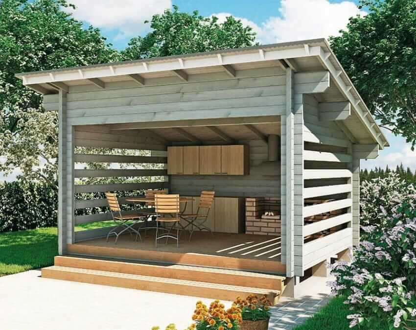 Для опытного плотника самостоятельно соорудить над летней кухней — навес от дождя, не составит никакого труда