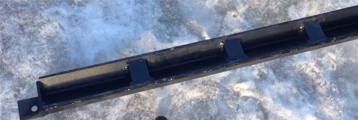3. От трубы малого сечения отрезают два куска по длине равных ширине корпуса. Приваривают их к корпусу последовательно. Второй кусок приваривают лишь слегка;
