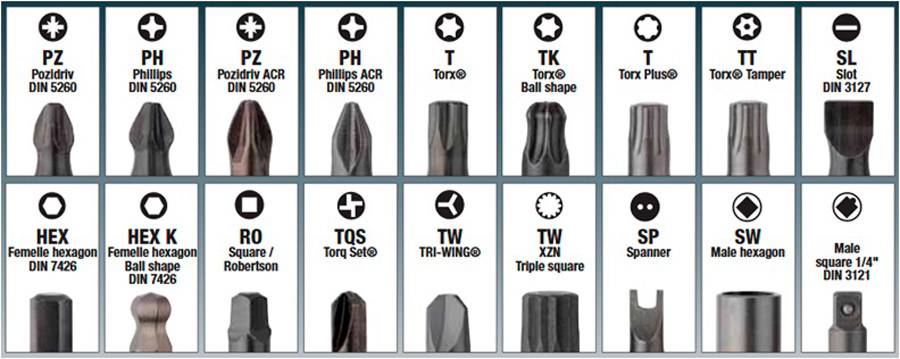 Среди крестообразных бит на шуруповерт выделяют такие известные разновидности: