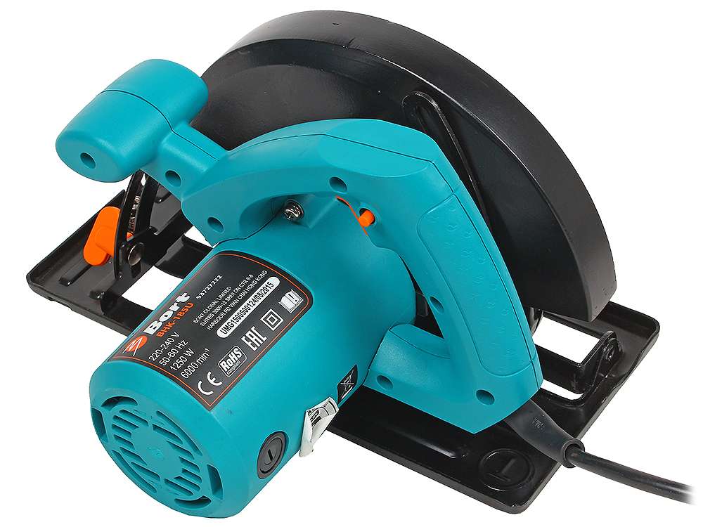 Bort BHK-185U – циркуляционная пила, которая на сегодняшний день имеет одну из самых низких цен, но при этом обладает неплохими характеристиками. Режущий элемент допускает использование дисков до 185 мм с диаметров шпинделя 20 мм. Для вращения использован электрический двигатель на 1250 ватт, развивающий угловую скорость до 5600 об/мин. Можно использовать выставление глубины распила: под углом 90 градусов это значение составляет 6,4 см, а при 45 градусах – 4 см. В комплекте есть набор из параллельных упоров, облегчающих позиционирование инструмента и точность реза.