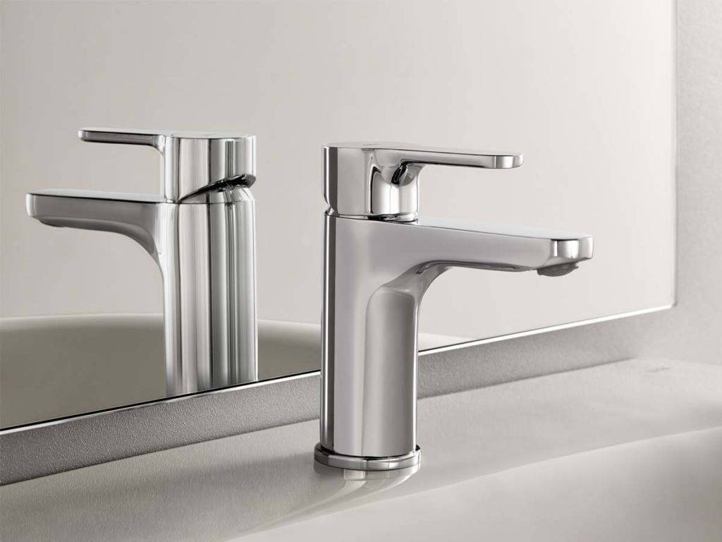 Для раковины в ванную подойдёт простой вариант с одним рычагом. Однако иногда удобнее два вентиля: ими регулировать напор и температуру проще