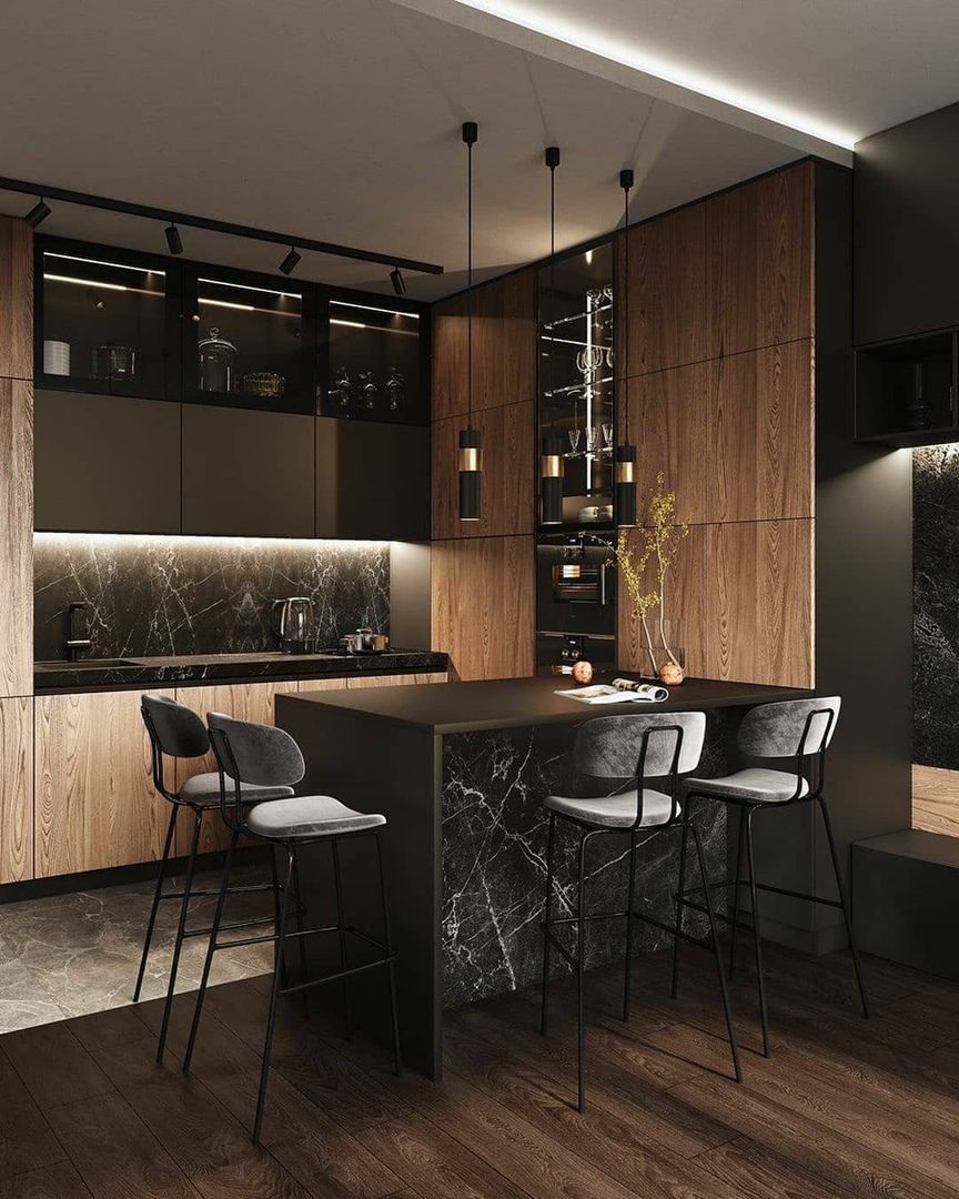 Мраморная столешница не самый практичный вариант, но можно найти хорошую альтернативу – кварцевый агломерат. Внешне они очень схожи, только он в разы прочнее. Так что никто даже не заметит подмены, только внимательный наблюдатель, разбирающийся в тонкостях.