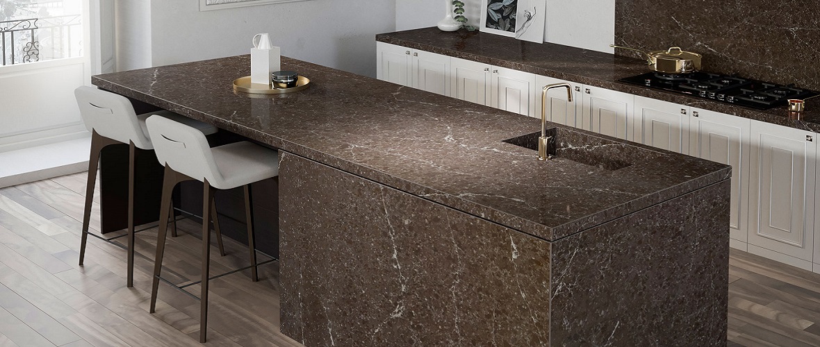 Этот материал сравнительно недавно начал использоваться для создания красивых и прочных столешниц. С ним легко работать, ему можно придать любую форму и размер, а также он устойчив к высоким температурам. Мраморная крошка, входящая в состав готового изделия может достигать 80%, остальное это краситель и полиэфирная смола. По внешнему виду, плита практически не отличимая от натуральной, но вот эксплуатационные характеристики у неё будут выше, при более доступной стоимости