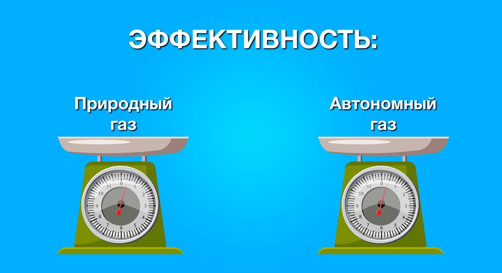 Перефразируя Глеба Жеглова, «газ — есть газ». Эффективность сжиженного углеводородного газа (СУГ) точно такая же. КПД газового котла одинаков с любым газом и составляет 97% на полной мощности.
