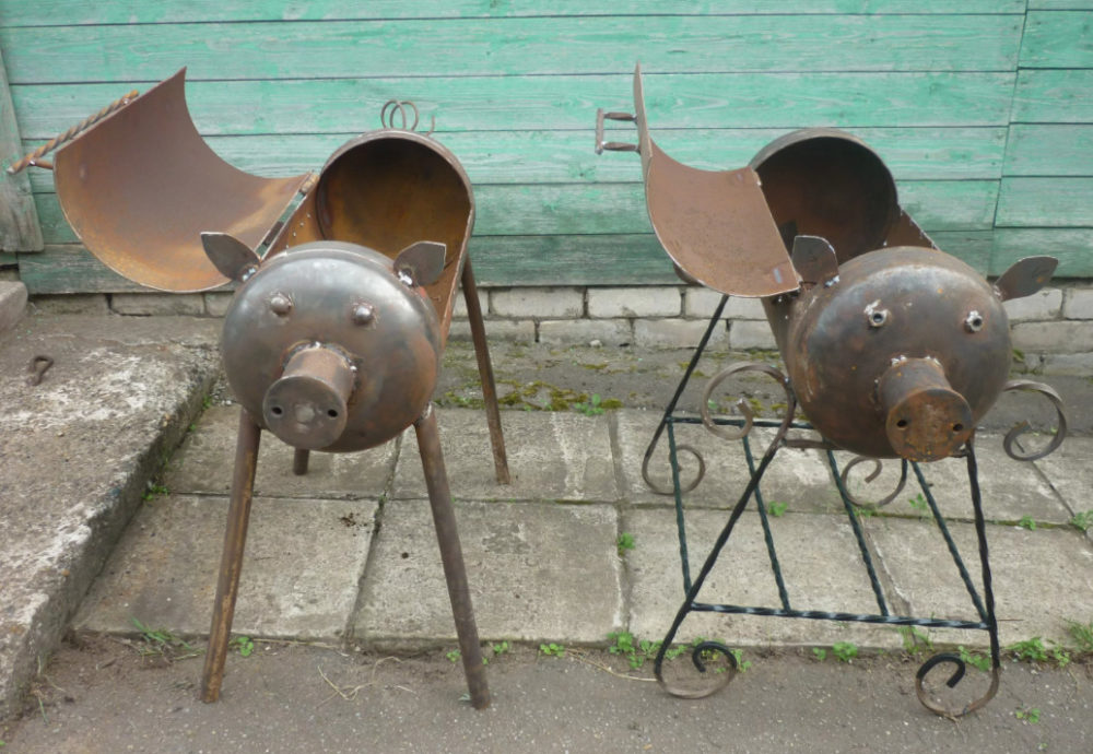 Делается она, так же как и мангал, но только к ней добавляется топка, которую изготавливают из железного листа или небольшого газового баллона. Для этого часть днища мангала спиливают и приваривают к нему топку.