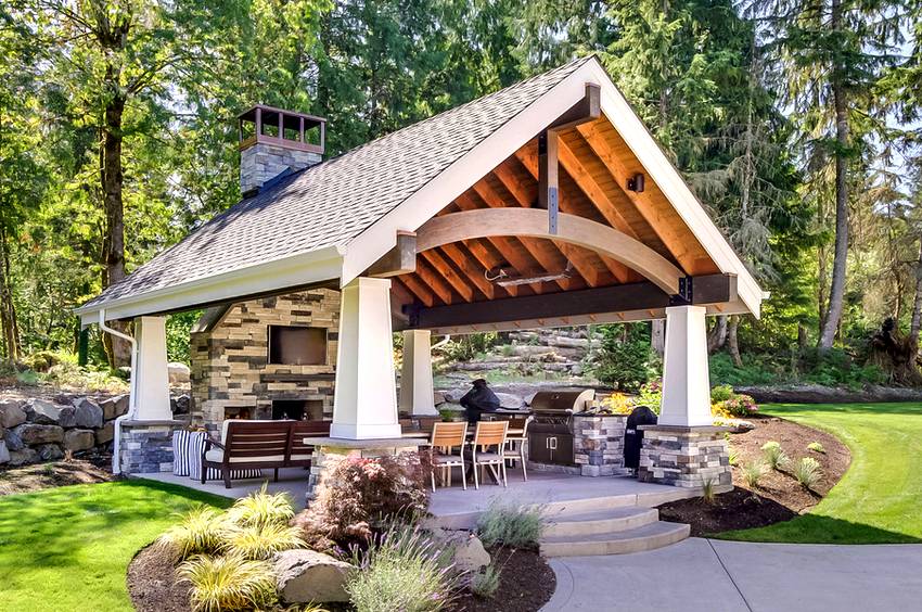 Но неизменно одно: крыша над площадкой, для того чтобы была возможность провести великолепный пикник даже в дождливую погоду.