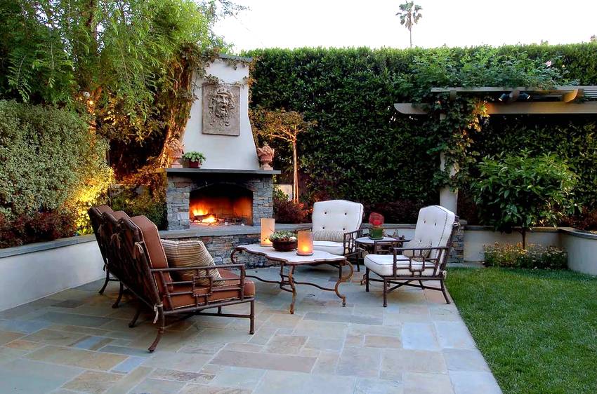 - патио – комната под открытым небом, ограждениями которой служат стены прилегающих зданий (дом, придомовые и хозяйственные постройки). Это уединенное и скрытое от посторонних глаз место, которое можно при желании обустроить любым видом очага и навесом.
