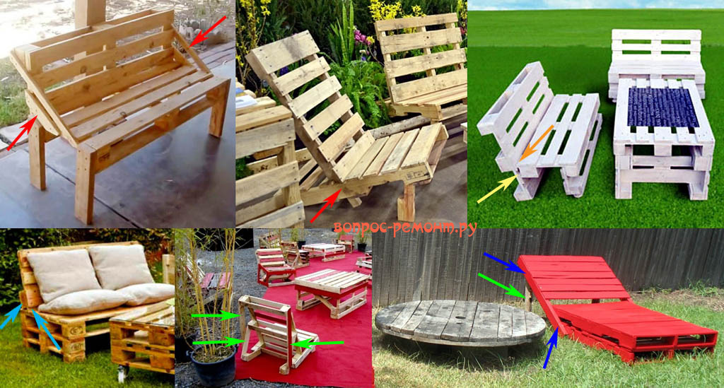 Альтернативный вариант – распилить поддон на небольшие части и сделать подлокотники из них.