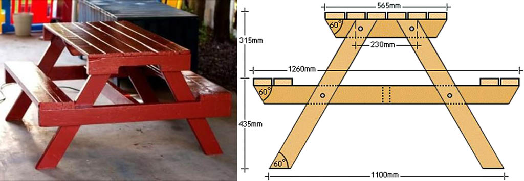 Если хотите поставить ее на садовом участке и подойдет длина скамейки 120 см, то отпиливать доски не придется.