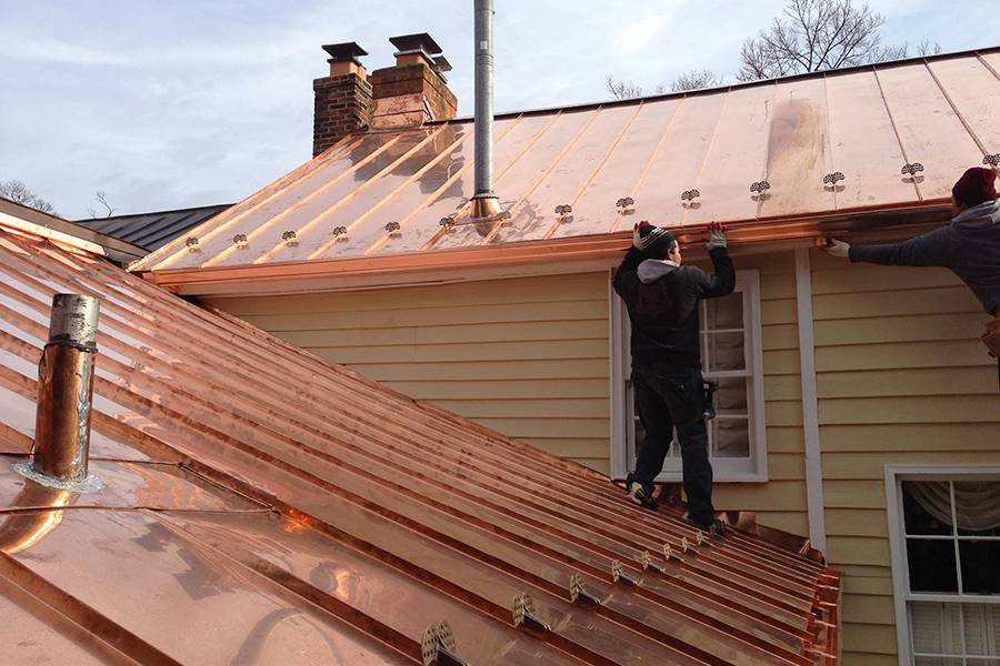 При строительстве обрешетки необходимо учитывать «кровельный шаг», то есть постоянное расстояние между ребрами обрешетки. В противном случае медные листы начнут провисать. Монтаж имеет индивидуальную специфику, которая зависит от формы выпуска материала: лист-панель или рулон.